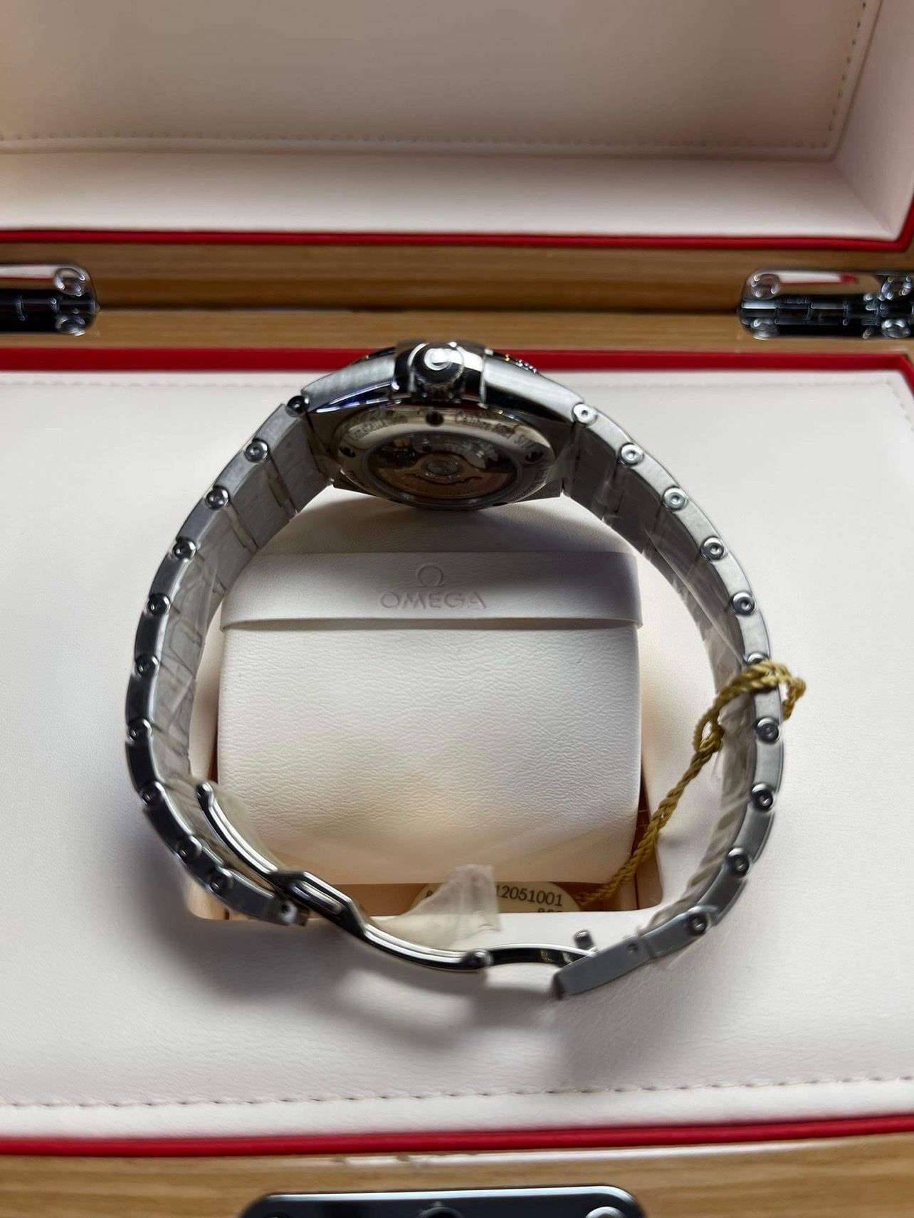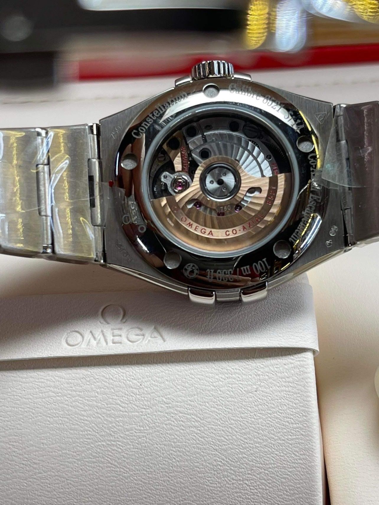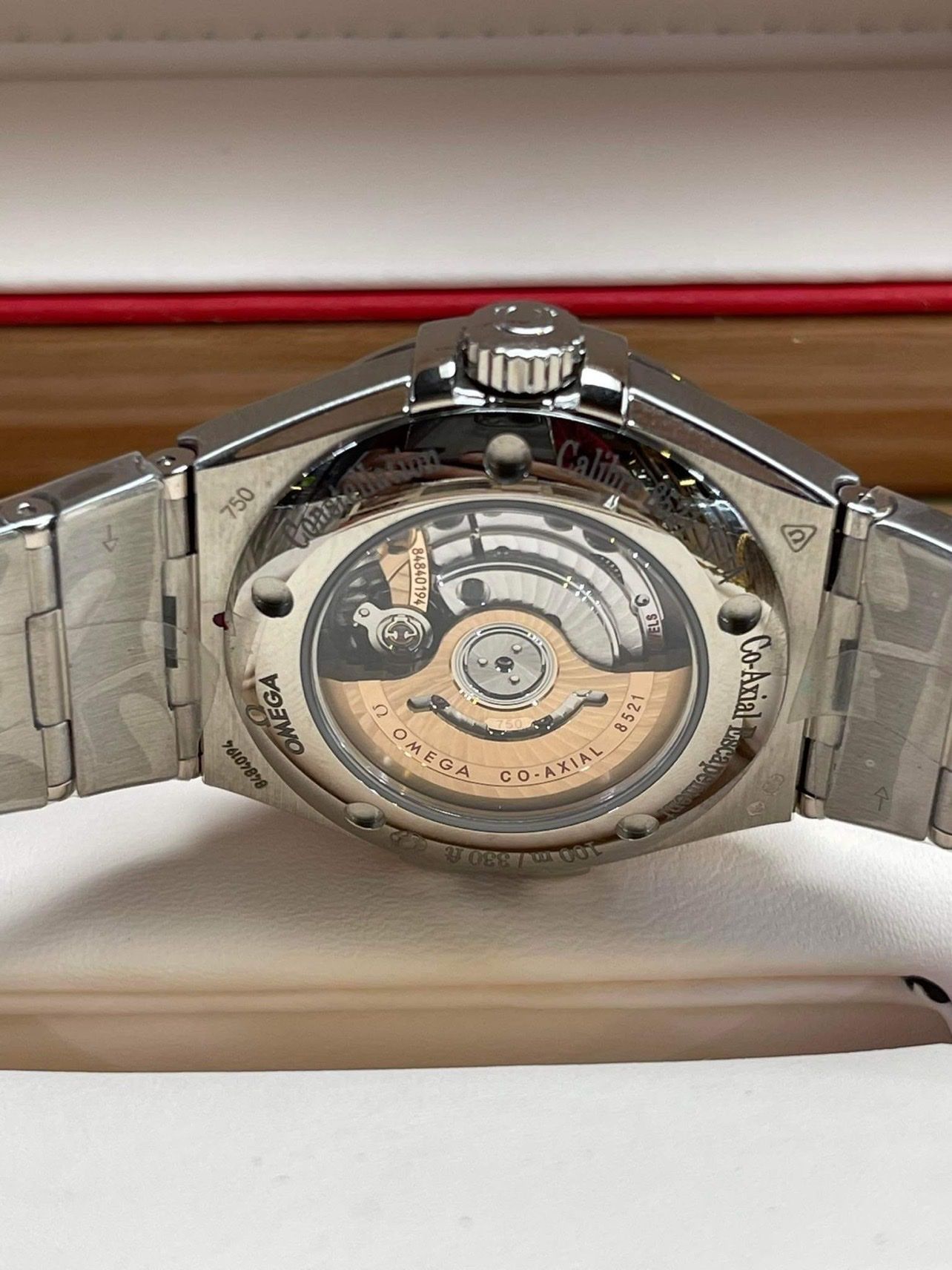 At the heart of this timepiece is the OMEGA Co-Axial calibre 8521, visible through the transparent caseback.